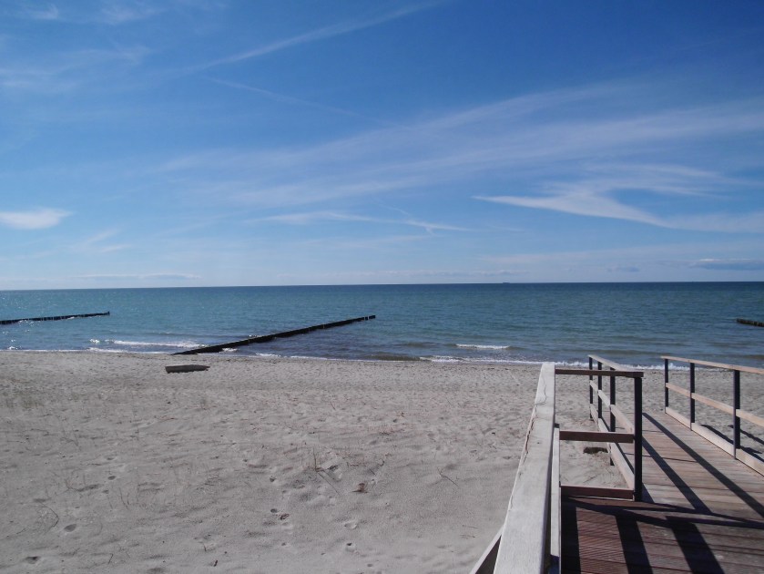 Ich bin ja eine absolute Wasserratte und hoffe, dass das Bärchen auch mal eine wird. Am Sonntag haben wir die Bärchenoma auf Kur auf dem Darß besucht. Das Wetter war herrlich, die Sonne schien, aber es war nicht zu heiß und man konnte fast schweißfrei draußen sein. Zusammen mit dem Bärchenpapa sind wir zunächst etwas mit dem Kinderwagen spazieren gegangen, aber dann wollte ich ans Meer.