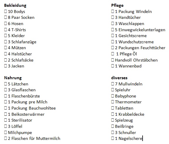 heute melden wir uns zurück. Zurück aus dem ersten Bärchenfamilienurlaub. Zusammen mit dem Bärchen sind wir vier Stunden zu Verwandten nach Sachsen gefahren. Zunächst einmal war das Packen eine logistische Meisterleistung. An sich liebe ich mein Auto. Vor fast drei Jahren haben wir es gewagt und uns einen Neuwagen gekauft, einen KIA Rio. Er ist klein, aber praktisch. Aber seit das Bärchen da ist, wünsche ich mir immer öfter einen kleinen Bus (aber mit Rückfahrsensoren, denn ich kann absolut nicht einparken, was auch zur Kaufentscheidung des Rios zugetragen hat) um ihren ganzen Kram mitzukriegen. Und leider hatte ich mich nun beim Kinderwagenkauf auch noch vermessen, sodass dieser zusammengeklappt nicht in den Kofferraum passt, sondern das Unterteil hochkant in den Kofferraum kommt und die Wanne auf die Rückbank neben das Bärchen. So passte dann aber überhaupt kein Gepäck mehr ins Auto und wir entschieden uns, die Wanne zuhause zu lassen. Wollten wir mal mit dem Kinderwagen fahren, haben wir die Adapter an das Unterteil gemacht und den Autositz als Wannenersatz benutzt. Sollte man allerdings nicht zu lange machen, da das ja nicht die optimale Haltung für so kleine Babys ist. Auf jeden Fall haben wir fürs Bärchen gepackt. Und gepackt. Und noch mehr gepackt. Und Listen abgehackt, weil ich sonst komplett den Überblick verloren hätte. Und deswegen hab ich hier auch eine kleine Liste für euch, was wir für einen einwöchigen Urlaub nur für das Baby eingepackt haben.