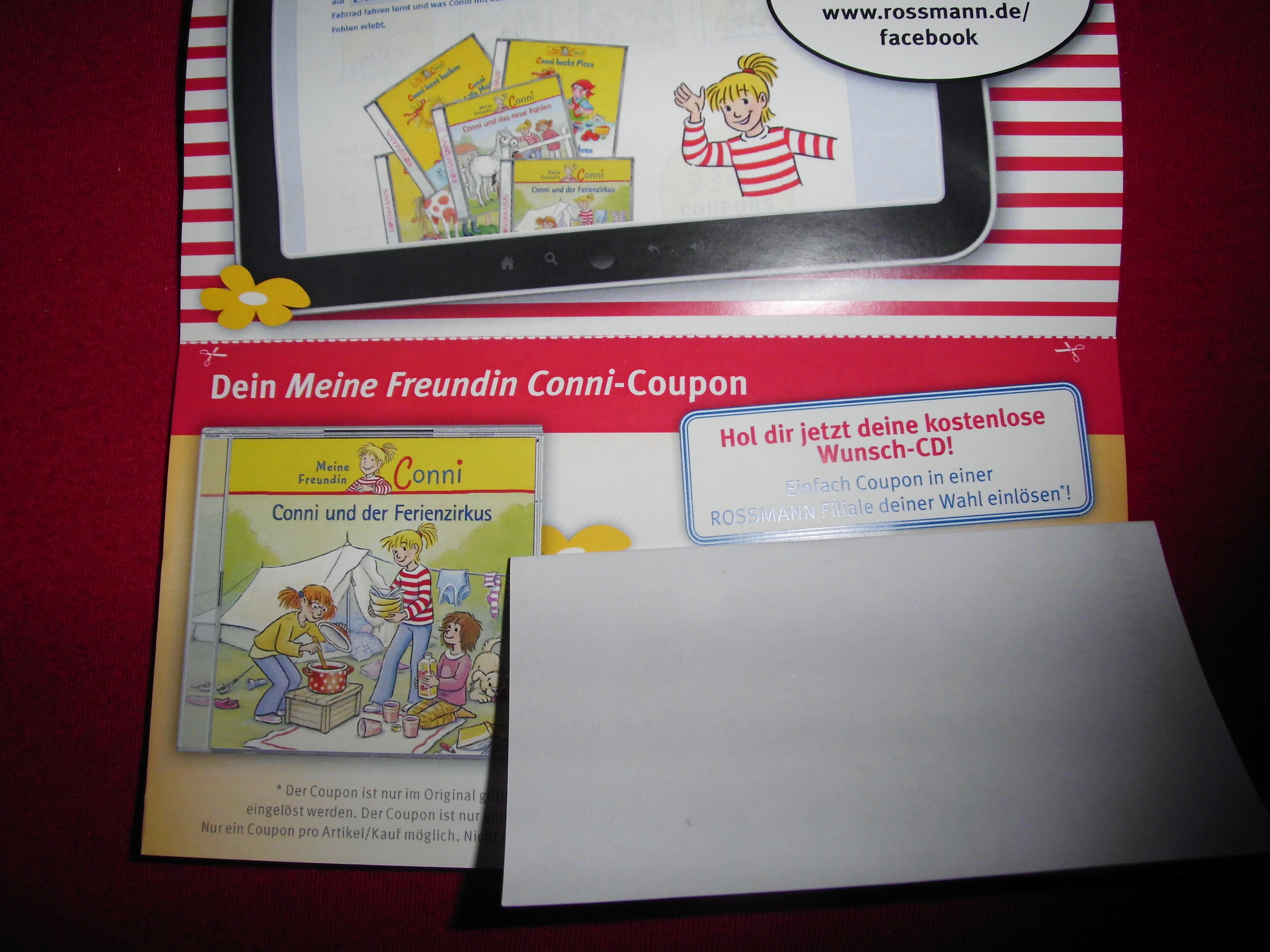 Hallo an diesem verregnetem Sonntag. Diese Woche kam bei uns leider so gar nichts an, außer einem Gutschein für eine Conni-CD unserer Wahl von Rossmann. Das ganze war eine kostenlose Aktion bei facebook von Rossmann und wir freuen uns schon sehr uns eine CD auszusuchen!