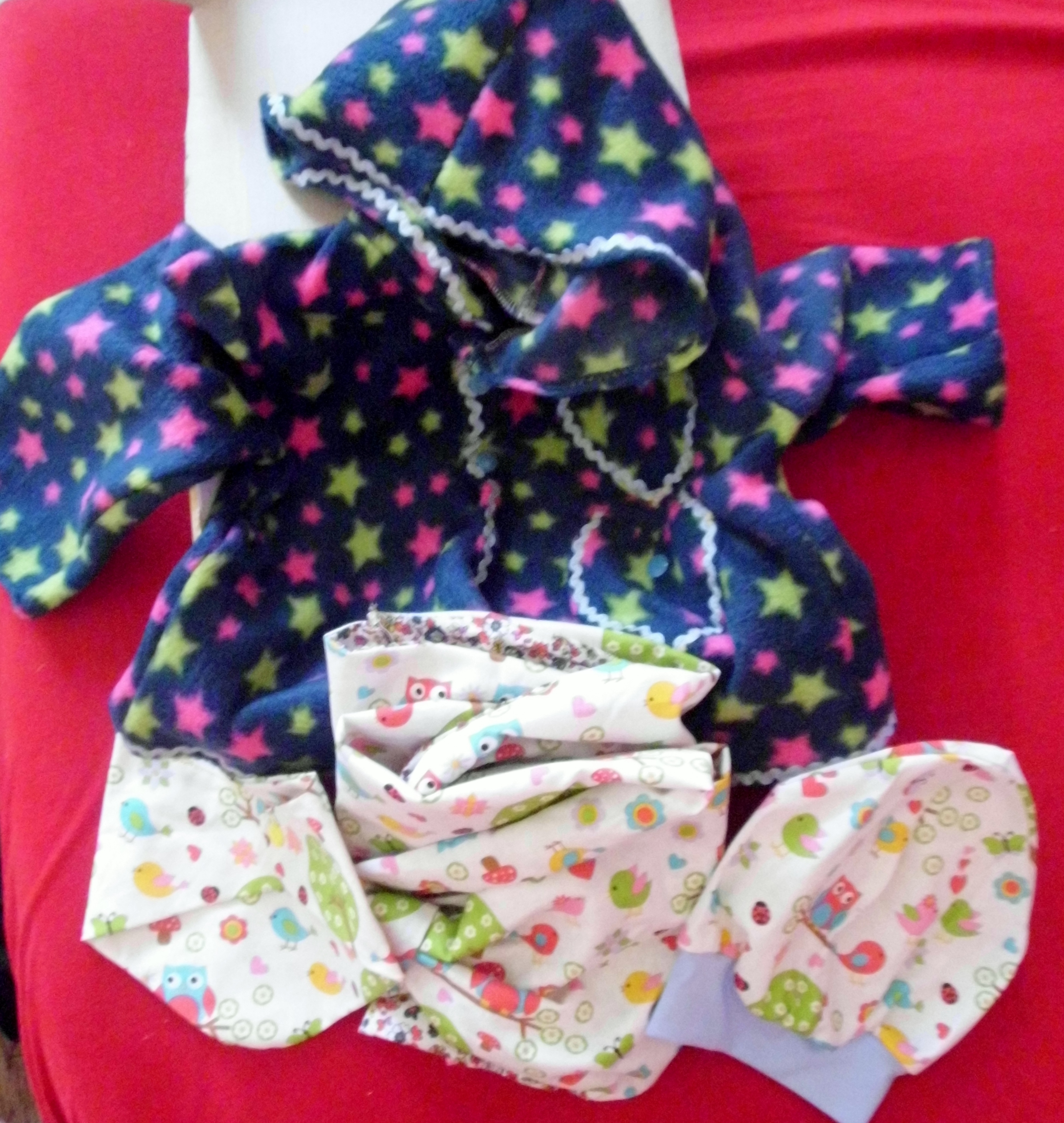 Eine wunderschöne Sternchenjacke aus Fleece und Beanie plus Tuch fürs Bärchen und dazu passenden Loop für die Bärchenmama, herzallerliebst, oder? Vielen lieben Dank noch mal für diese wunderbaren Sachen aus Biostoffen, mit Hand und Liebe genäht und das sieht man auch! Wie sieht das bei euch aus? Näht ihr Babykleidung selber oder habt ihr wie wir jemanden?