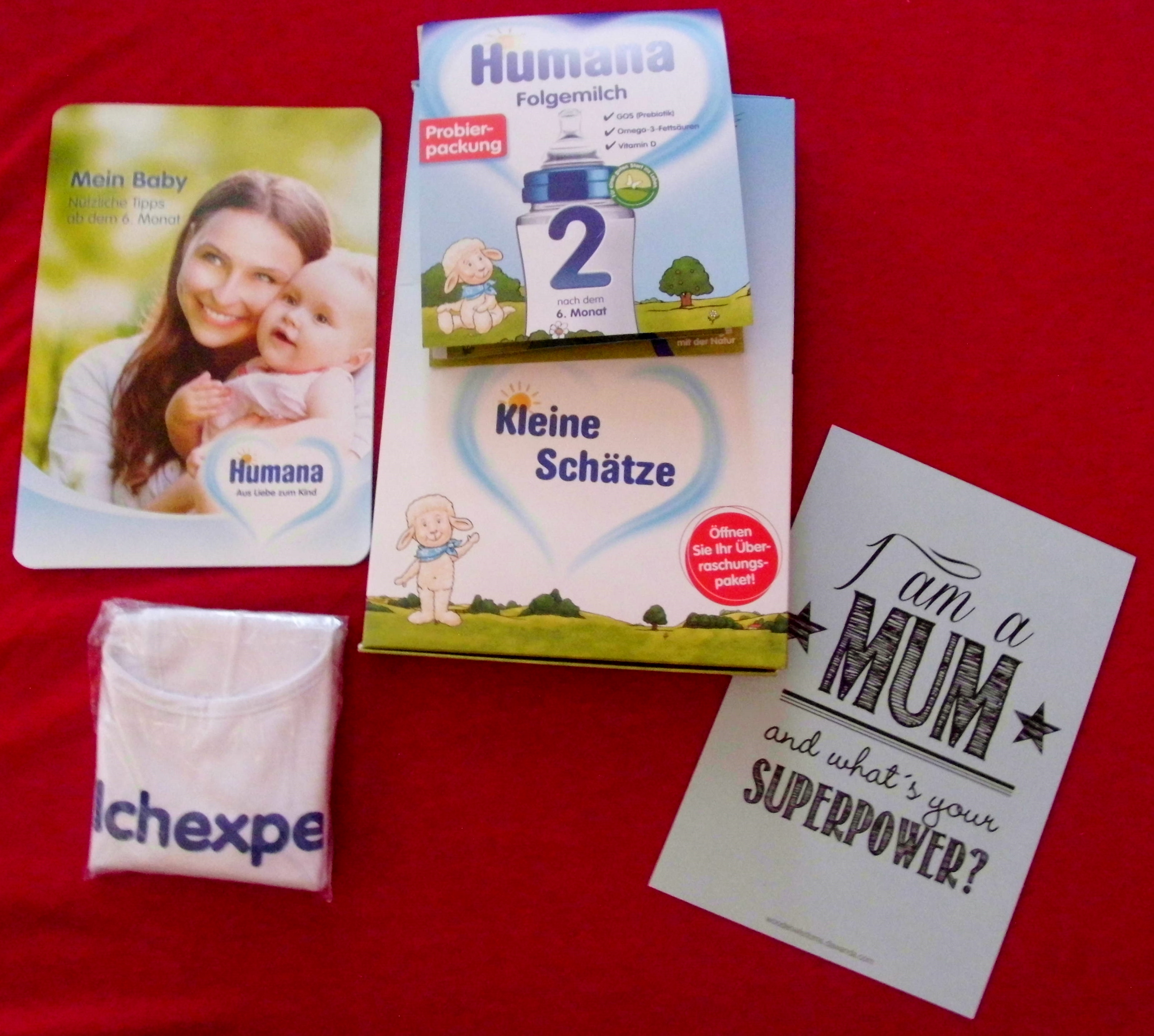 Kennt ihr Humana ? Ich hab es schon mehrmals hier erwähnt, wir haben vor der Geburt des Bärchens über die Internetseite und den Babyclub eine Schatzkiste bekommen, in der wir die Glückwunschkarten und anderen Kleinkram aufbewahren. Außerdem kommen regelmäßig Kleinigkeiten an, ein Kuscheltuch hatten wir auch schon und dieses Mal waren es neben Produktproben und Broschüren, die sehr gut gestaltet sind und wichtige Tipps enthalten, diese: