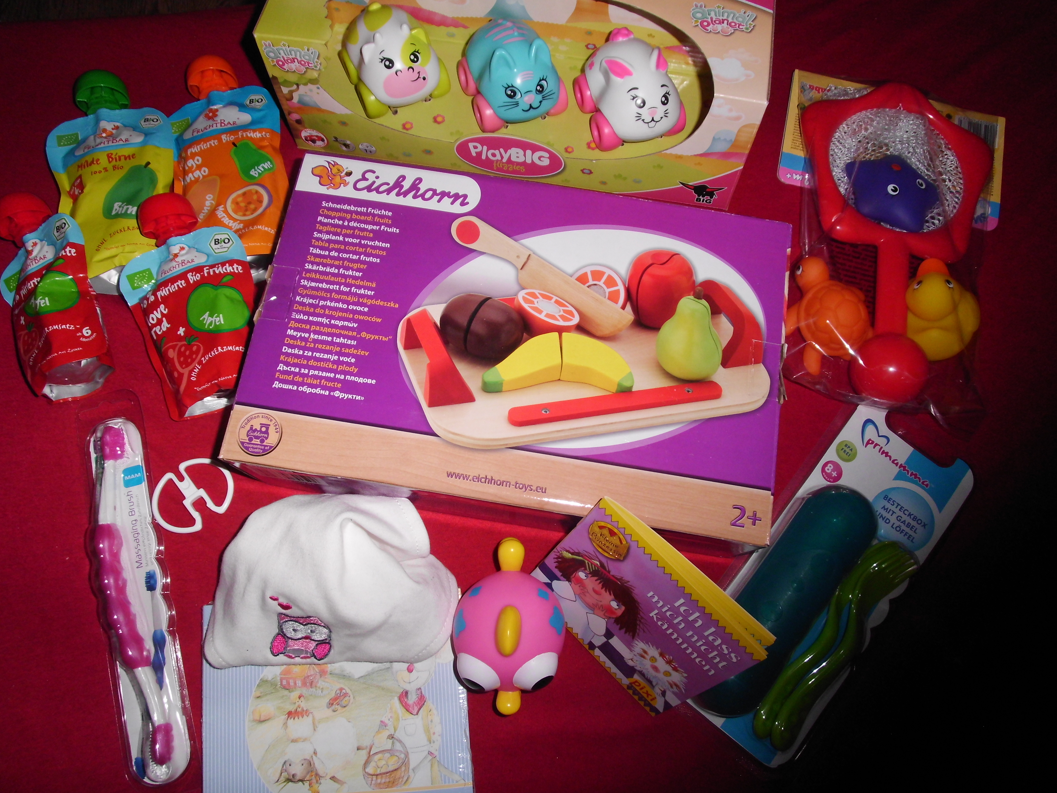 Alles dann natürlich einzeln eingepackt, einige der Goodies von der Babywelt Berlin sind auch dabei. 🙂