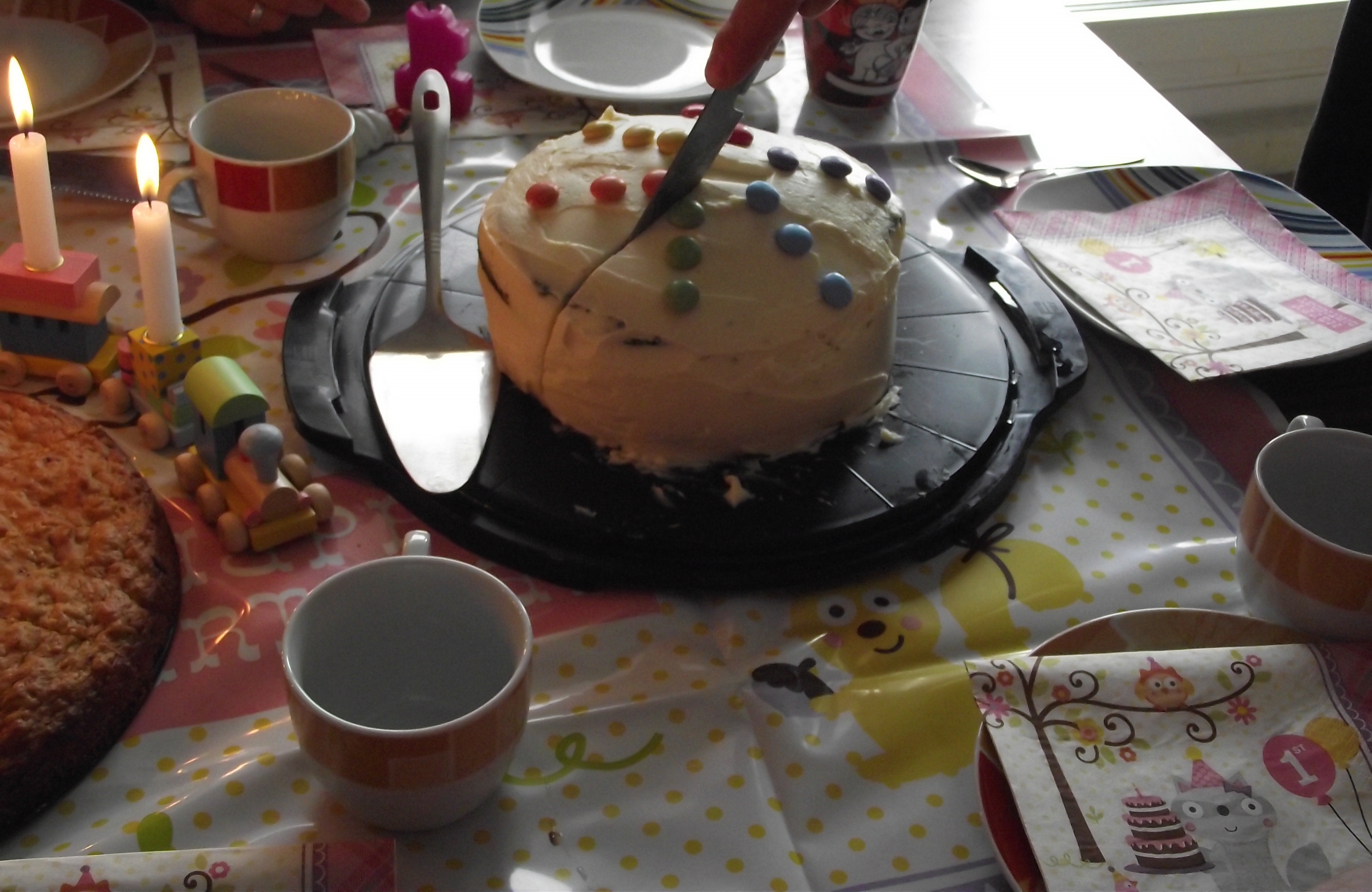 Mittags mit meiner Cousine zuhause, Bärchen schlief ein ganz kleines bisschen und wir haben dekoriert. Denn nachmittags kamen dann die Verwandten und Freunde mit Kinder um selbstgebackenen Kuchen zu verputzen.