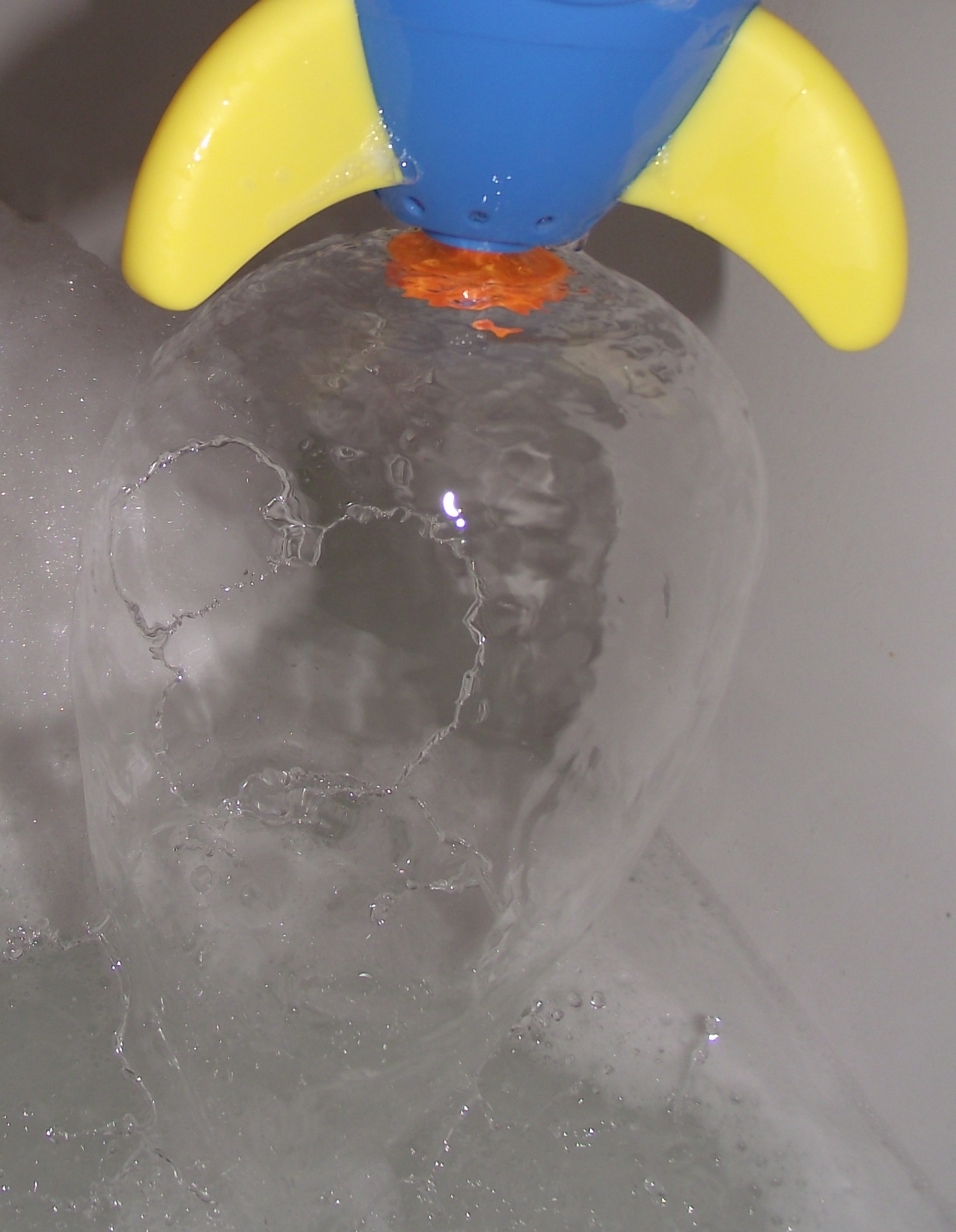 Zunächst einmal die Raketenfontäne aus der Verpackung nehmen und in die Badewanne stellen. Die Badewanne mit Wasser und wahlweise Badezusatz füllen und wer mag, der kann auch ein Kind hinzu geben.