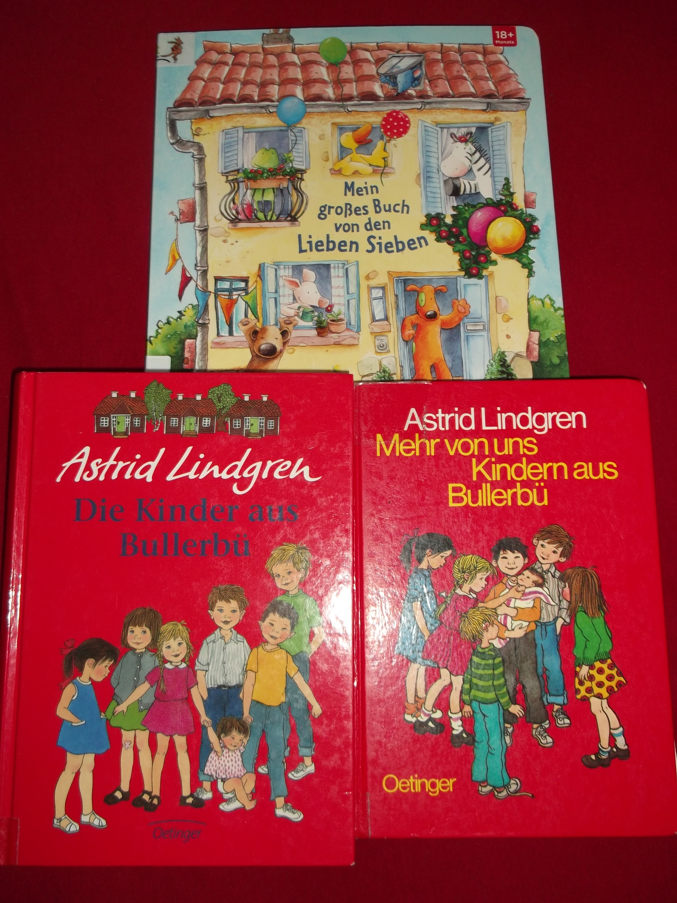 Diese Bücher haben wir dann ausgeliehen, ich hab erst zuhause gemerkt, dass das eine Buch von Bullerbü schon in dem anderen drinne ist, aber ist ja nicht schlimm. Es war auch alles ganz einfach. Ich musste nur eine Karte ausfüllen mit den Daten des Bärchens und nun können wir jederzeit kostenlos Bücher, Hörspiele und Spiele ausleihen, immer für vier Wochen mit der Möglichkeit der Online-Verlängerung. Sehr praktisch. Nur DVDs kosten einen Euro Ausleihgebühr. Alle waren ganz nett und haben mir auch gleich den Aufzug für den Buggy gezeigt und auch akzeptiert, dass das Bärchen doch etwas lauter war und ziemlich viel Unsinn gemacht hat. Und wir haben sogar ein Geschenk bekommen!