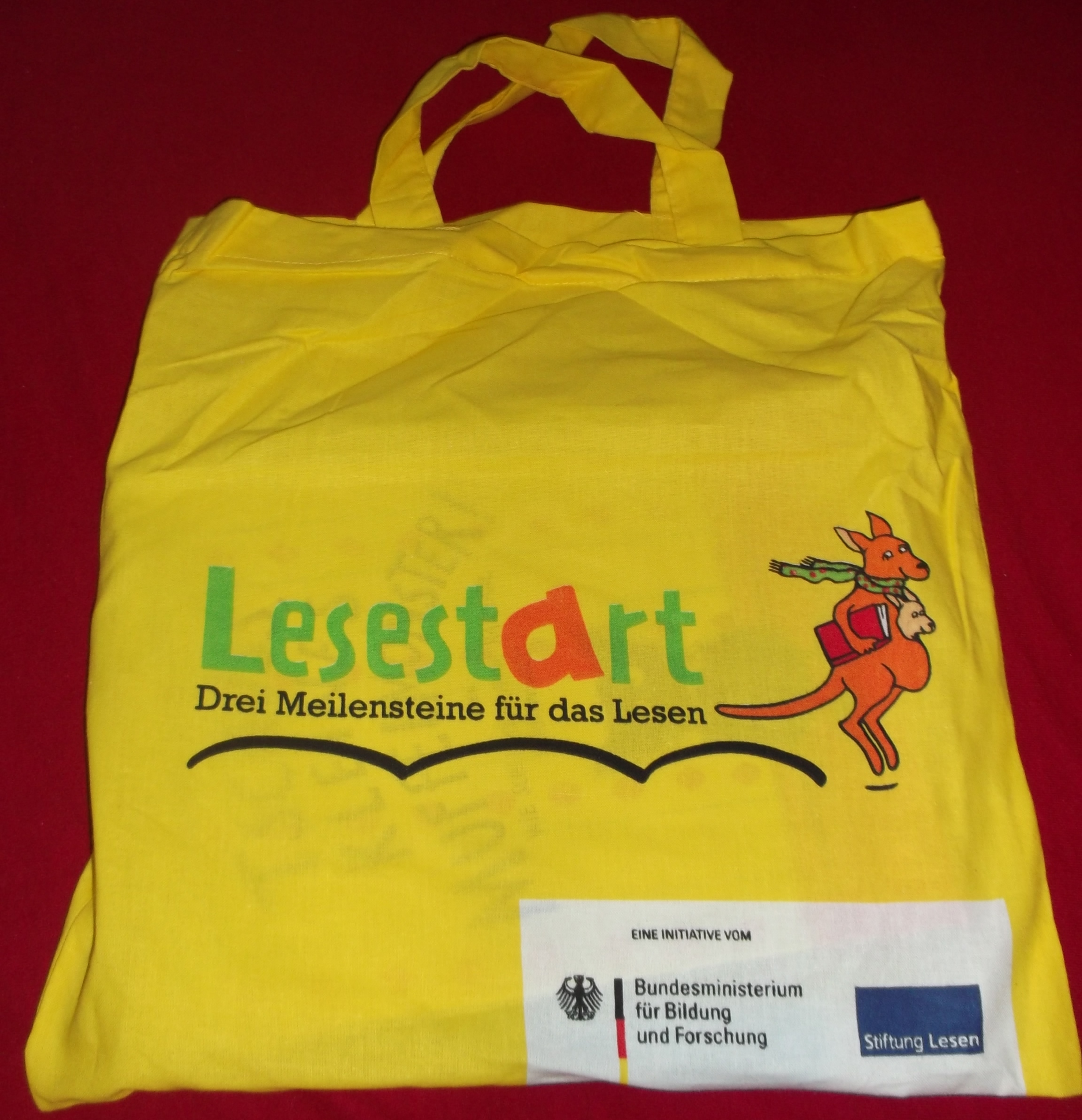 Einen Beutel der Aktion Lesestart Drei Meilensteile für das Leben und drinne war: