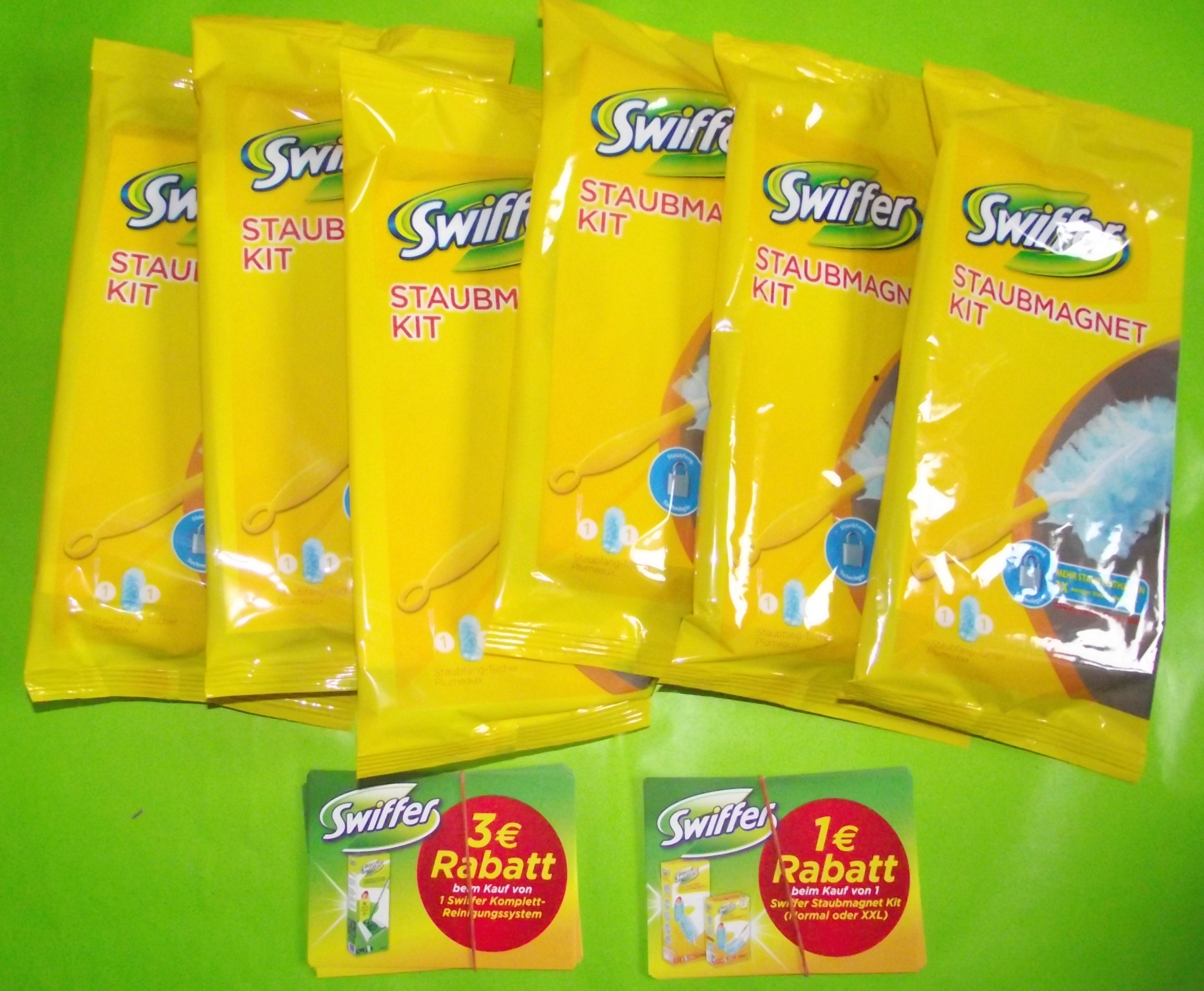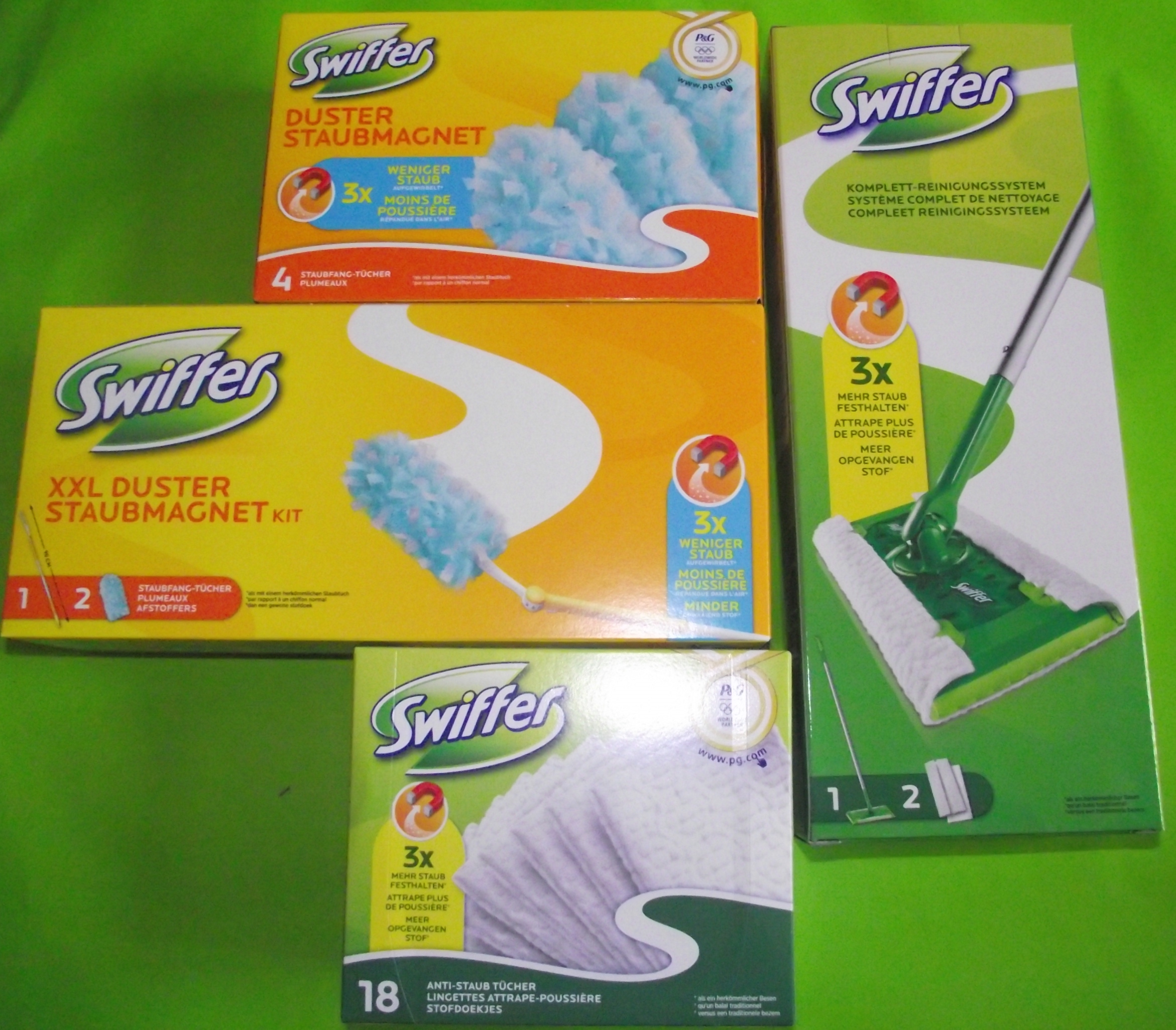Hier seht ihr die Produktproben, die wir an Freunde und Familie verteilt haben, zum Ausprobieren und sich selbst überzeugen. Insgesamt können wir sagen, dass wir die Swifferprodukte mögen. Das Bodenreinigungssystem ist definitiv besser als ein Besen und entfernt gerade die Katzenhaare sehr gut. Der XXL Staubmagnet ist perfekt für kleiner Leute. Wir werden uns zwar keine weitere Katze holen (TV-Werbung), aber swiffern weiter!