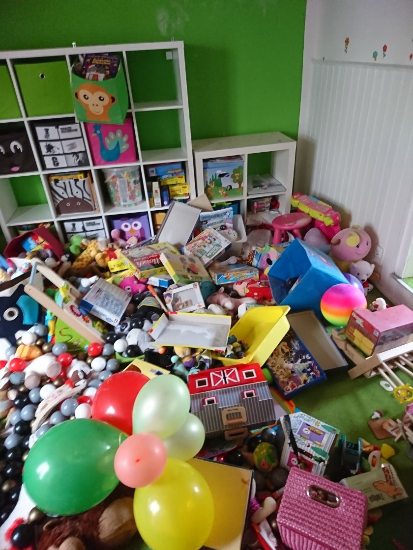 Klar ist es also oft nervig, das Zimmer wieder aufräumen zu müssen. Aber schlimm ist es nur, wenn Besuch da war und das weiß man dann schon vorher. Bei meinen beiden ist es dann eher etwas möhlig als chaotisch, das geht zusammen sehr schnell.