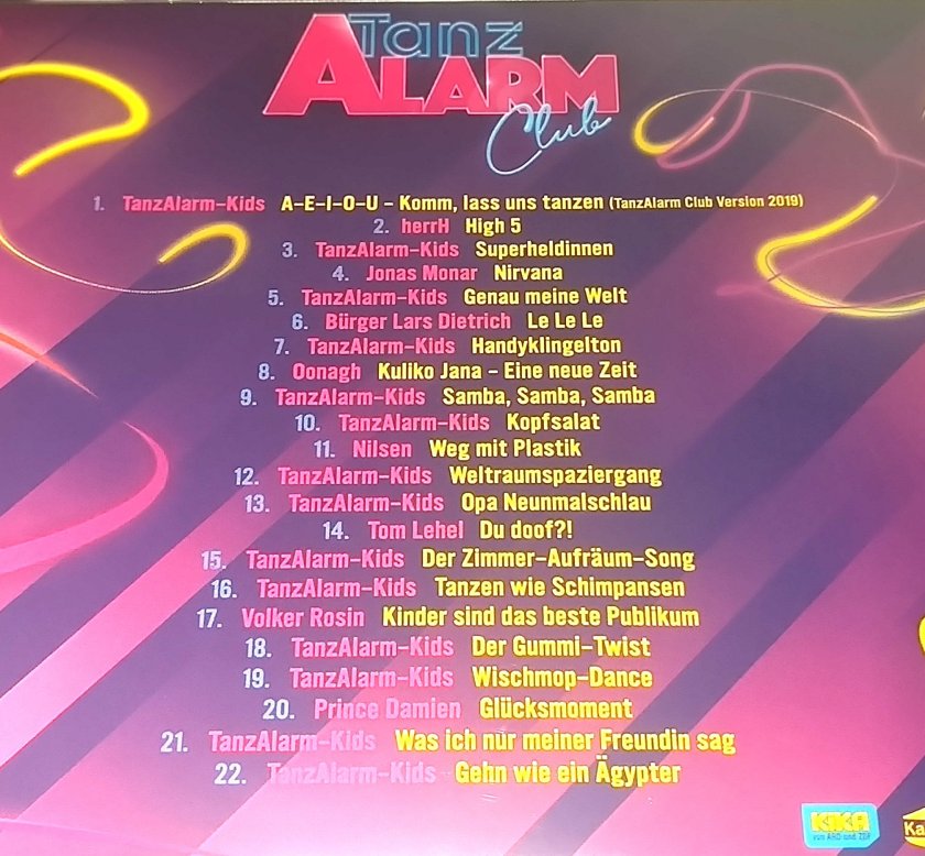 Neben vielen Liedern der TanzAlarm-Kids sind auf dem Album auch bekannte Künstler, wie herrH, Jonas Monar, Bürger Lars Dietrich und Volker Rosin zu finden. Die komplette Auflistung der Lieder seht ihr jetzt :