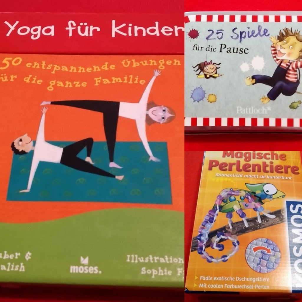 Sehr gute Erfahrungen haben wir mit den Yogaübungen für Kinder gemacht. Da sind einfache Übungen drinnen, Entspannung und auch Traumreisen, alles gut und kindgerecht erklärt und bebildert. Die kleine Metalldose mit den Pausenspielen gibt es auch mit Murmelspielen und Seilspringen und sie sind so klein, dass sie perfekt in den Schulranzen passen. Bastel- und Experimentiersets gibt es von so vielen Marken und so vielen Themen, dass auch für euer Kind etwas passendes dabei ist. Während unserer Quarantäne haben wir viele Sets gemacht, die die Tochter kurz vorher zum Geburtstag bekommen hat, Glitzersteine, Malen nach Zahlen, Edelsteine, Gewächshaus,unglaublich viele Möglichkeiten.