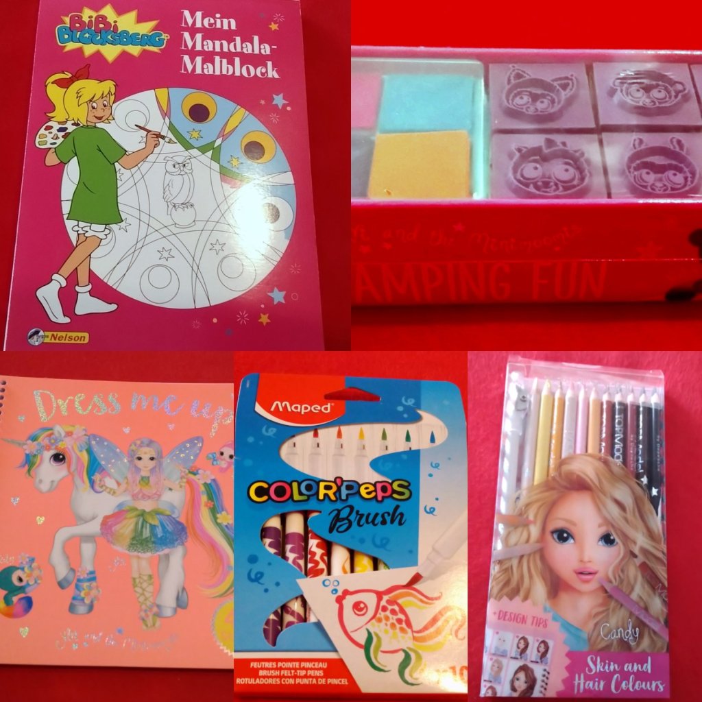 Auch Mal- und Bastelsachen dürfen nicht fehlen. Natürlich kann man hier auch die Sachen nutzen, die die Kinder für die Schule brauchen, allerdings bekommen wir die Materiallisten, in denen auch die genauen Stifte und so weiter stehen erst kurz vor Schulbeginn, das ist mir doch etwas zu kurzfristig für die Schultüte, muss ja dann auch alles noch beschriftet werden, dazu hatten die Tochter und ich uns schon Sticker erstellt, als diese mal sehr günstig waren. Mit Mandalas, Dress up Büchern, kleinen Stempeln und besonderen Stiften kann man hier nie was falsch machen. Ganz besonders hat meine Tochter sich das Set der verschiedenen Haut- und Haarfarbenstifte gewünscht,damit sie alle ihre Freunde malen kann. Da bin ich irgendwie schon ein bisschen stolz darauf, denn : „Mama, nicht jeder hat die Hautfarbe vom Hautfarbenstift.“