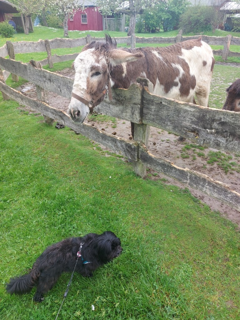 Die Esel können beobachtet, gestreichelt, und gekuschelt werden, die Mitnahme von Hunden ist kein Problem, nur auf die anderen Tiere muss natürlich geachtet werden, insbesondere auf die Katzen. Die Esel sind immer sehr interessiert an unserem Freddy.