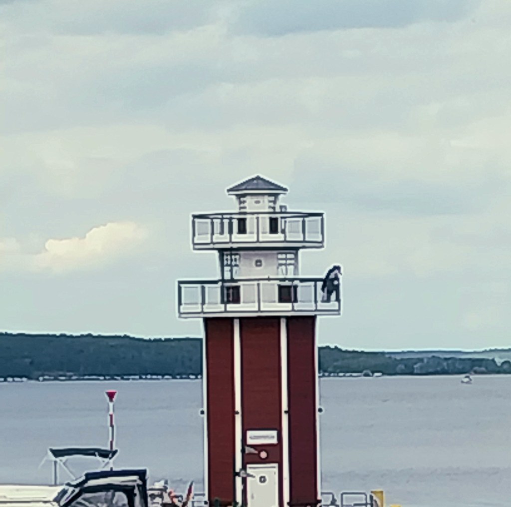 Leider mögen unsere Kinder nicht so gerne Fisch, aber da direkt neben dem Imbiss Jannys Eis ist, stellt das kein Problem da. Und so hat dann jeder sich gestärkt und wir gehen weiter, die Eldepromenade entlang, Schiffe gucken, Wetter und Wasser genießen, auf den Weg zu einem weiteren Turm von Plau. Nach dem Burgturm gibt es noch den Kirchturm und diesen 13,5 Meter hohen Leuchtturm.