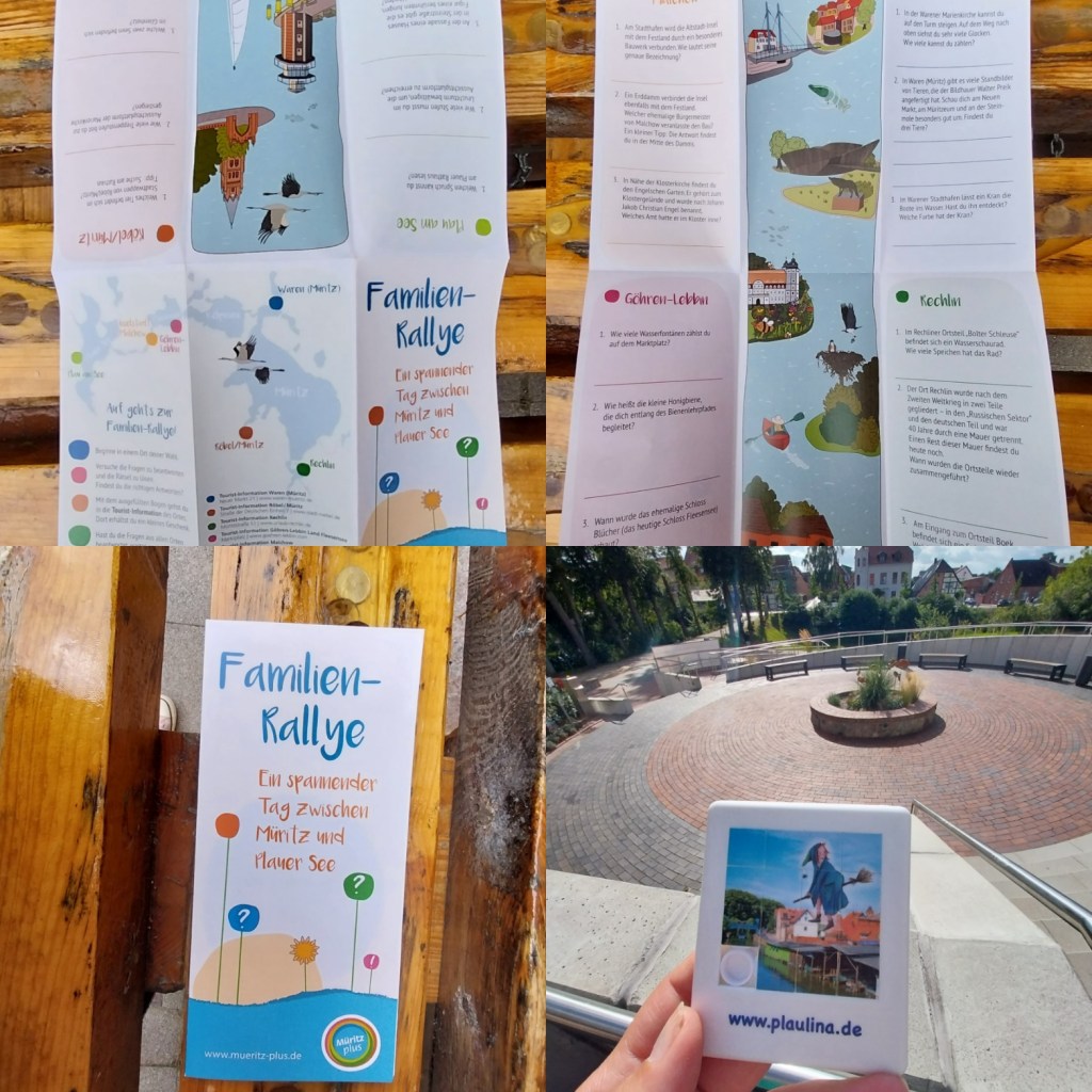 Dieses Jahr kann man in sechs Städten rund um die Müritz Fragen beantworten und so die jeweilige Stadt entdecken. In jeder Stadt kann man in der Touristeninformation dann die Antworten überprüfen lassen und wenn alles richtig ist, bekommt man einen Stempel und die Kinder ein kleines Geschenk passend zur Stadt. In Plau am See haben meine Kinder das Puzzle hier bekommen: