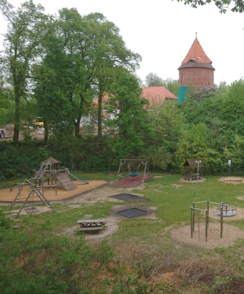 Übrig geblieben von der Burg ist dieser Burgturm, der heute bestiegen und besichtigt werden kann, nachdem er wirklich viele Jahre sehr vernachlässigt wurde. Auch das Technikmuseum ist hier zu finden. Das Highlight meiner Kinder ist aber immer der schöne große Spielplatz. Es gibt mittlerweile ein gerade fertig gestellten neues Klettergerüst, allerdings konnte ich kein neueres Foto machen, da einfach zu viele Kinder unterwegs waren, letzte Woche, am ersten sonnigen Tag hier seit gefühlt ewiger Zeit. Beim Burghoffest kann man hier dann auch Rittern und Gauklern begegnen.