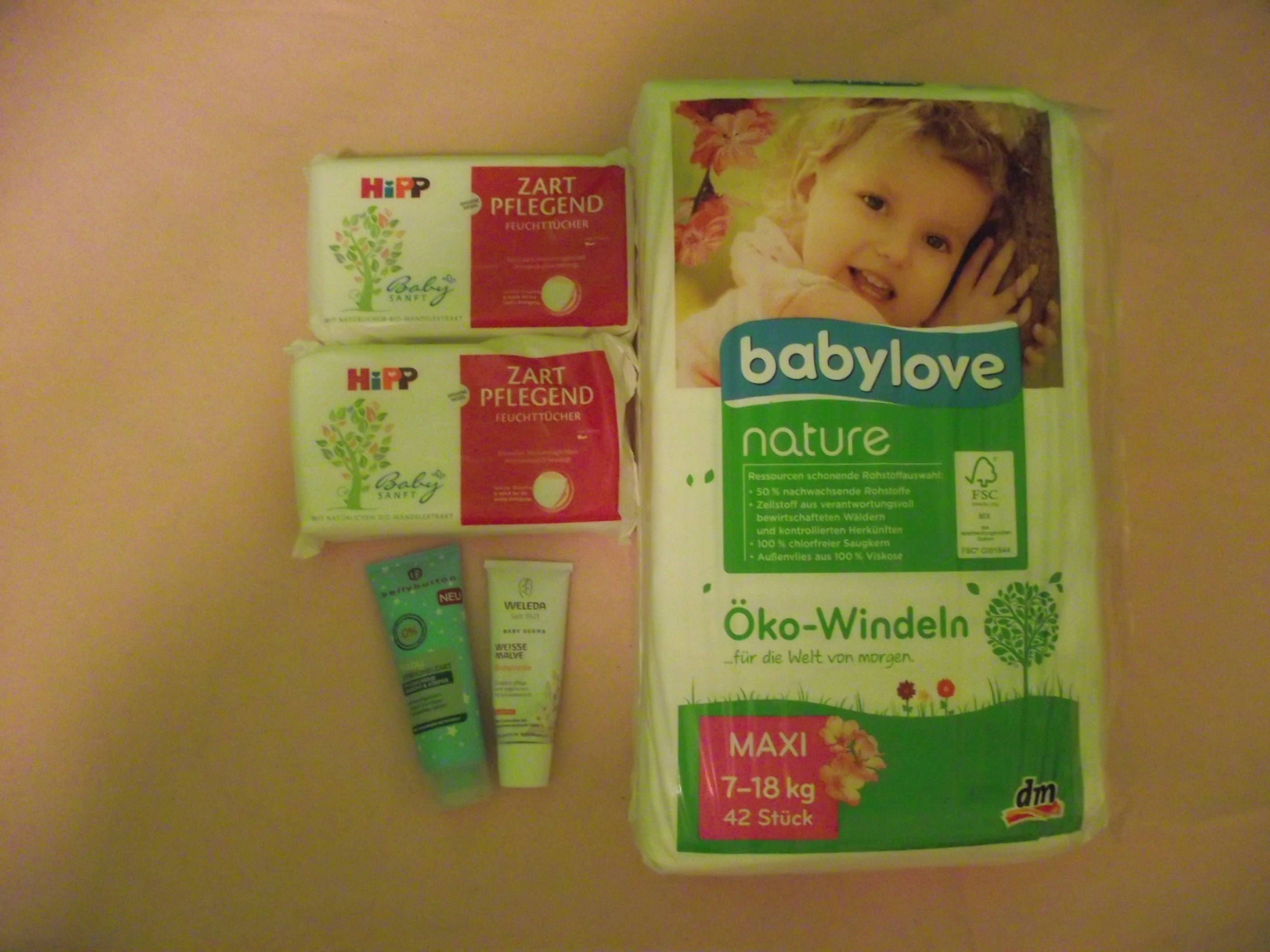 - Windeln, Cremes, Feuchttücher und Ordner mit Bild des Bärchens in die Kita gebracht